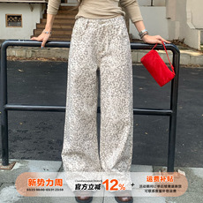 查尔斯桃心 美式小狗涂鸦扎染满印宽松休闲裤男女百搭直筒长裤子