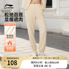 李宁热力裤丨女士秋冬休闲阔腿裤卫裤加绒裤子针织显瘦香蕉裤女款