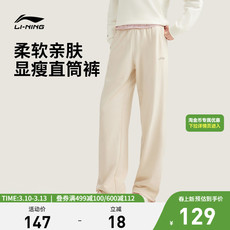 李宁卫裤女新款休闲刺绣黑色裤子春季宽松直筒跑步针织运动长裤