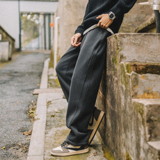 兔先森美式复古重磅针织卫裤男士秋冬季加绒加厚宽松直筒休闲裤子