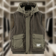 大捡漏 380g超细摇粒绒+羊羔绒保暖男士休闲连帽背心秋冬马甲外套