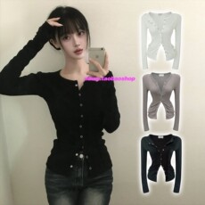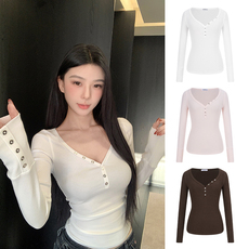 eihey诶嘿辣妹风长袖T恤打底衫可外穿修身收腰显瘦百搭短款上衣女