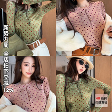 Brandy bm瑶瑶同款内搭华夫格粉碎花长袖T恤显瘦外穿纽扣上衣女短