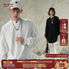 400g重磅纯棉长袖t恤宽松纯色秋冬白色打底衫内搭加厚男女情侣款