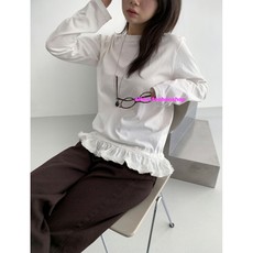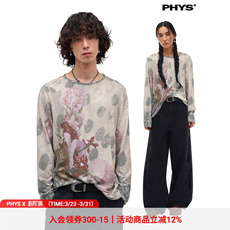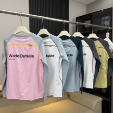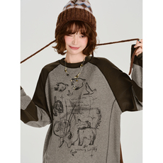 画风drawwind2026春季新款长绒棉长袖T恤女宽松圆领假两件打底衫