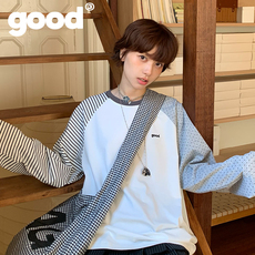 韩系慵懒风撞色条纹长袖t恤女秋冬新款条纹宽松显瘦长袖上衣女潮
