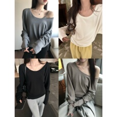 superniniyy 淡人氛围慵懒感大圆领可露肩蝙蝠袖百搭长袖T恤上衣