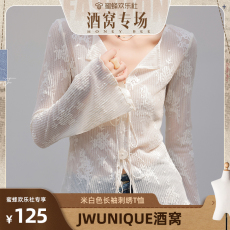 【蜜蜂欢乐社】JWUNQIUE米白色设计感长袖刺绣T恤别致上衣