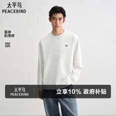 100%棉长袖t恤秋衣男圆领宽松上衣全棉体恤男女TEE打底衫纯棉白色