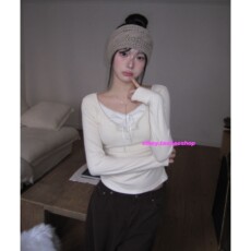 pusumede人手一件 白色圆领针织打底衫女内搭长袖T恤宽松百搭上衣
