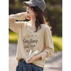 SIXI四喜家 Lazy life字母印花长袖T恤女春季宽松显瘦打底衫上衣