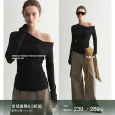 【现货】Mogas优雅延续重磅莱赛尔羊毛混纺斜肩一字领长袖T恤上衣