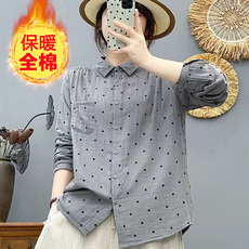 双层棉纱保暖衬衫2025秋冬打底衬衣气质开衫减龄波点上衣女86293