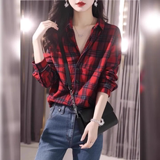 2025年爆款欧货洋气超好看独特漂亮复古红色格子POLO领衬衫女上衣