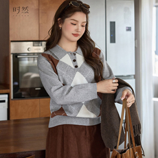 时然大码微胖MM2026冬新款学院风POLO领针织衫撞色减龄毛衣外套