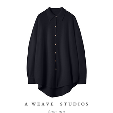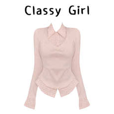 秋冬新款polo领假两件时尚纯色长袖上衣女气质内搭打底衫保暖外套