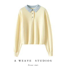闭眼收的一款!新款拼色100%纯山羊绒衫女POLO领纯羊绒毛衣秋冬
