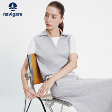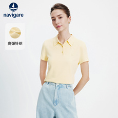 Navigare意大利小帆船26春季高弹针织翻领T恤绞花女士修身POLO衫