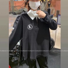 洋气时尚条纹假两件拼接卫衣新款韩版polo领上衣宽松显瘦大码衬衫