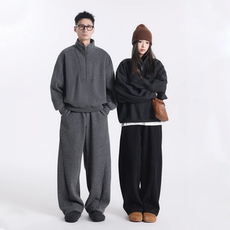 冬季加绒运动卫衣套装美式简约连帽开衫外套百搭休闲裤两件套情侣