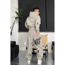 春季新款高品质潮流设计炫彩十字架卫衣阔腿休闲裤男士痞帅两件套
