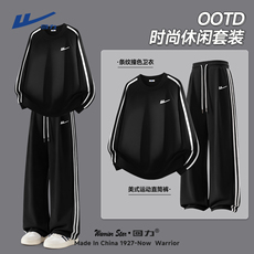 TRENDYWU 美式复古“格林”拼接加绒400克棉弯刀卫衣裤运动套装