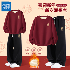 真维斯本命年男士运动套装青少年2026马年红色加绒卫衣男款保暖Q