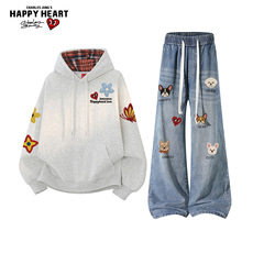 真维斯2025新款时尚潮流设计感秋冬款加绒加厚休闲卫衣卫裤套装