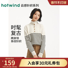eihey诶嘿26秋季新款日系条纹连帽针织衫毛衣纽扣开衫休闲外套女