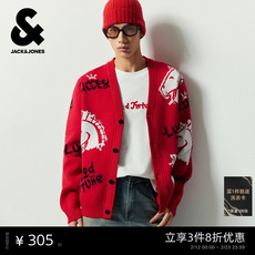 【马年新年款】杰克琼斯男装春季红色雪尼尔开衫毛衣针织衫服本命