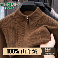 上海春竹纯羊绒衫男士冬季半高领拉链针织衫中年加厚保暖打底毛衣