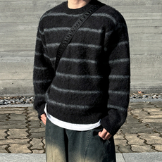 MRCYC老钱风条纹圆领毛衣男冬季保暖宽松针织衫韩系日常通勤穿搭
