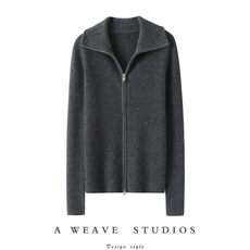 气质美学!法式修身100%纯山羊绒开衫女纯羊绒毛衣针织打底衫秋冬