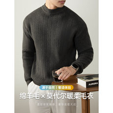 【羊毛莫代尔】高端重磅加厚款毛衣男半高领提花秋冬季保暖针织衫