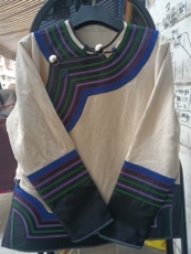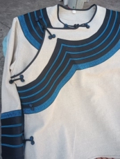 新款凉山西昌彝族男装上衣棉麻白色蓝色刺绣花条纹阿都少数民族风