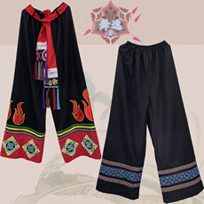 彝族成人男单裤子 苗族火把节男装长裤 壮族少数民族特色绣花黑裤
