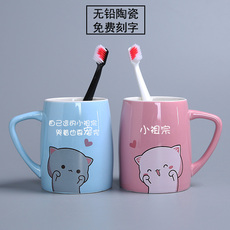 可爱卡通情侣洗漱杯套装陶瓷牙刷杯子一对家用漱口杯刷牙杯牙缸