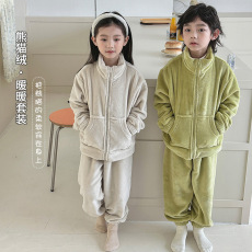 纯棉睡衣春秋新款纯色磨毛长袖情侣家居服可外穿大码男女士套装