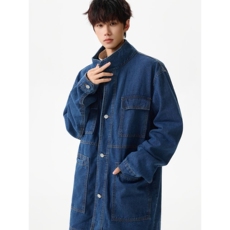 尾郎的店秋季美式宽松oversize中长款牛仔外套男痞帅工装夹克情侣