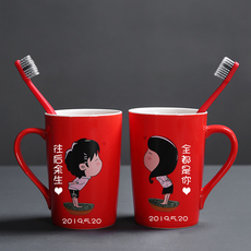 结婚洗漱杯子一对情侣牙刷杯套装陪嫁新婚用品红色陶瓷漱口牙缸杯
