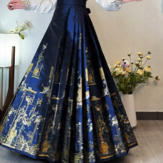 新中式古风马面裙套装女显瘦高腰半身裙中国风新款提花百褶短裙夏