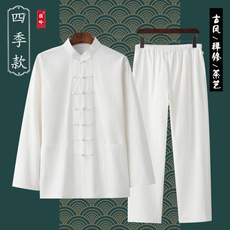 四季款棉麻复古新中式唐装中国风男女套装休闲宽松大码居士太极服