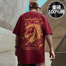 2026新款中国风马年本命年男加肥加大码国潮重磅短袖T恤夏季上衣