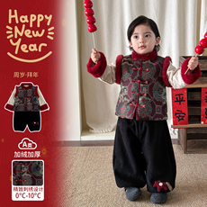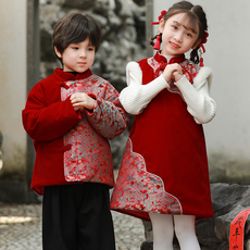 叙罗儿童拜年服宝宝喜庆红色过年礼服兄妹装冬季男女童中国风外套