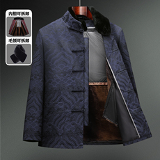 冬季唐装男加绒加厚爸爸棉衣外套套装中国风中老年人爷爷生日棉袄