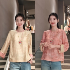 春秋款重工时尚中国风新中式气质长袖衬衫7403