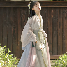 半夏正品魏晋风成人汉服女学生印花交领广袖中国风八破裙古装日常