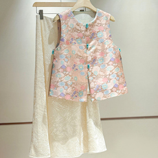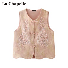 拉夏贝尔/La Chapelle春季新款中国风盘扣提花外穿洋气减龄马甲女