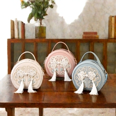 2026新款diy材料包手工礼物中国风圆包大容量学生编织单肩斜挎包