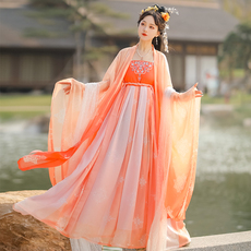 玖月初原创中国风唐风唐制齐胸一片式褶裙夏季超仙飘逸汉服女全套